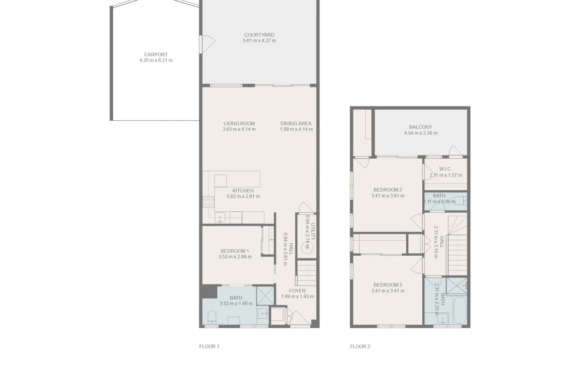 • Downstairs features a spacious living, dining and kitchen area which flows onto a private courtyard, main bedroom with ensuite plus laundry.