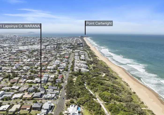 Superbly positioned just 50 metres from the golden sands of Warana Beach, and opposite a beach access and park, No. 1 Lapoinya Crescent ticks all the boxes for the astute buyer.